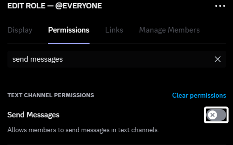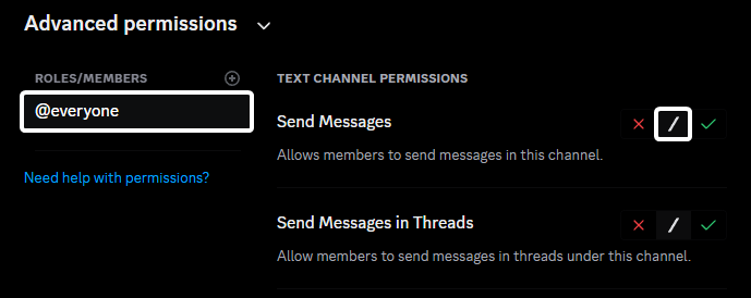 @everyone or member role and ensure that the Send Messages permission isn’t enabled.