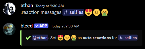 If youโre interested in having reactions on every message, you can use thereaction messages command.