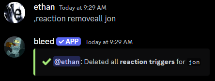 reaction reset command to remove all reaction triggers.Viewing all reaction triggers