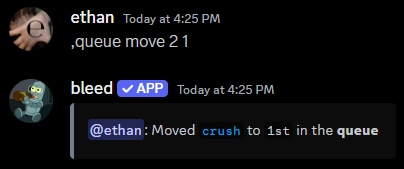 Use thequeue move command to move a track in the queue.
