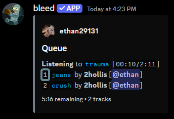 Use thequeue command to view the tracks in the queue.