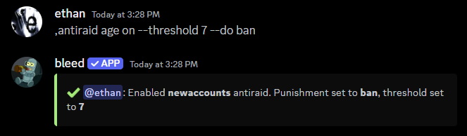 recentban and raid commands.The